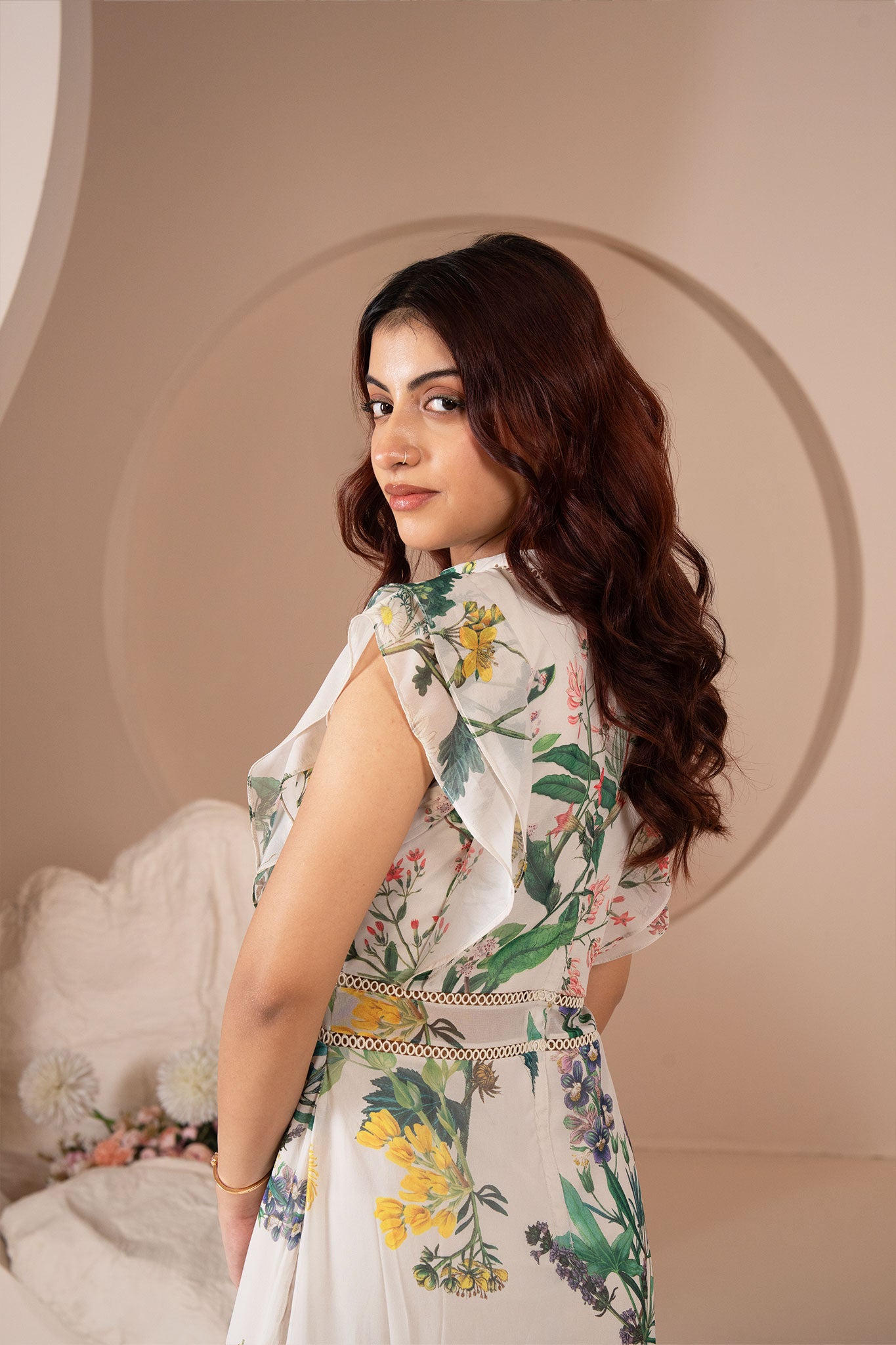 Drift’s silhouette is a layered Maxi — each ruffle, tier, and curve reflecting the emotional folds of becoming. Fitted and slightly elevated, creating a gentle empire line that elongates the form.